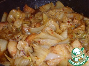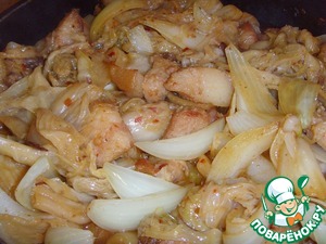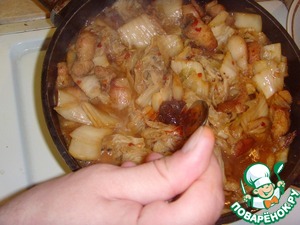 Чимчи-поккым. Всем доброго времени суток! Случилось так, что у меня образовался излишек чимчи, по этому я решил приготовить из неё горячее мясное блюдо - чимчи-поккым. Дословно, в переводе с корейского, "чимчи-поккым" означает "жаренное чимчи". Как бы получается корейский вариант "солянки из квашенной капусты". Очень вкусно и необычно.