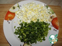 Начинка: Нарезать отварные яйца и зеленый лук |