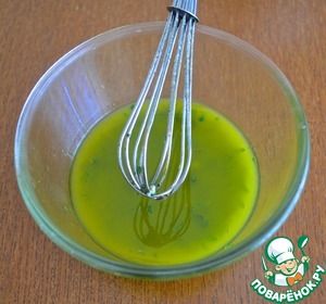2. Постепенно, постоянно взбивая венчиком, влить подсолнечное масло.