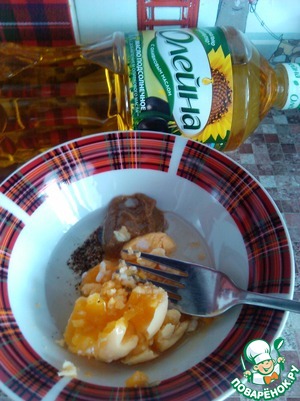 Смешиваем желтки, масло "Олейна", горчицу и перец. -
