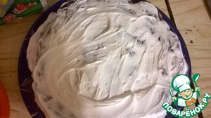Собираем торт, бока и верх смазываем кремом. Торт необходимо поставить в холодильник на несколько часов, а можно и на ночь.