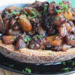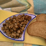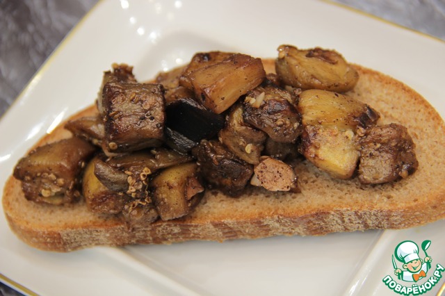 Затем добавляем баклажаны и держим на огне еще 5 минут, иногда помешивая. Подаем в салатнике. Я рекомендую подавать это блюдо в подогретых хлебных "тарелках". Получается очень вкусно и сочно. Всем рекомендую это блюдо.