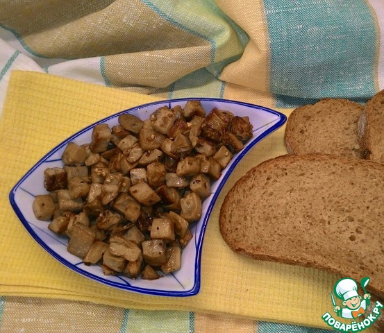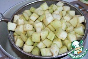 В сковороду наливаем растительное масло и обжариваем баклажаны на сильном огне до румяности. Выкладываем по желанию в дуршлаг, чтобы позволить стечь лишнему маслу.