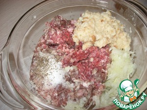 - Фарш мясной (у меня был свинина+говядина) — 1 кг
