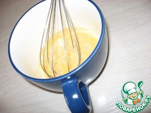 Яйца взбить венчиком. Не солить и ничего в них не добавлять (я имею ввиду муку, крахмал и прочее..)