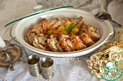 Очень вкусный праздничный рулет из нежной крольчатины с рисом и овощным соусом. Для этого рецепта понадобятся только спинки кроликов, остальные части можно использовать для следующего ужина и приготовить, например, кролика в горшочке с красным вином. Удобнее всего, конечно, попросить мясника разделать кролика для вас, но, если такой возможности нет, просто отделите хребтовую кость от мяса острым тонким ножом.