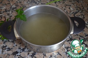 3. Кости положить в кастрюлю с небольшим количеством холодной воды и довести до кипения. Уменьшить огонь и добавить перец, 1 лавровый лист и соль. Варить 40 минут и процедить.