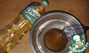 Добавить мед (или сахар) и растительное масло. Перемешать венчиком