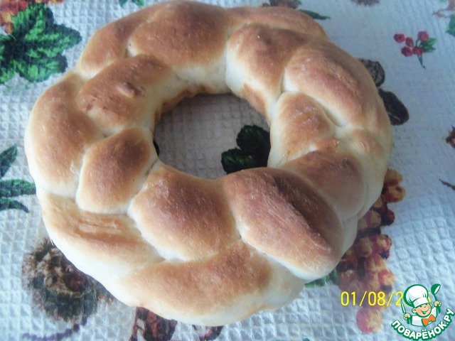Хлеб получается очень большим, на целый противень. Хотите плетенку поменьше, уменьшите количество ингредиентов. Умножьте их вес на 0,7 (выйдет плетенка весом 500г)