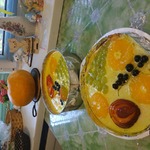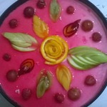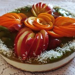 А это мой первый вариант: консервированный персик, яблоки, розочки из мандарина, мармеладные сердечки и цветная кондитерская посыпка, которая почему-то полиняла) Но все-равно было очень вкусно!