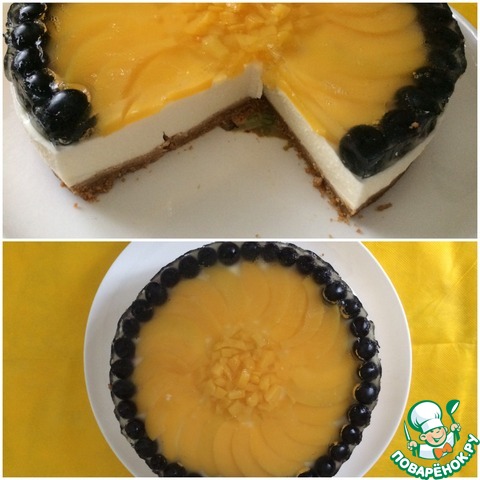 Верх украсила нарезанным нектарином, абрикосом и ягодами - черникой и черной смородиной.