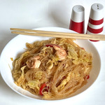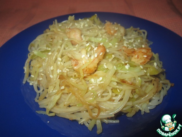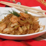 Большинство блюд с фунчозой - салаты, я предлагаю Вам рецепт горячего блюда. Оно у нас всегда "гвоздь программы" на праздничном столе. Это блюдо раньше готовила моя бабушка, правда с мясом, а вот мы с мамой готовим его в двух вариантах - и с мясом, и с креветками. Оба варианта вкусные. Приготовление этого блюда не потребует больших усилий. Надеюсь, оно будет у Вас в "любимчиках ", как и у нас.