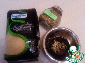 смешиваем сахар "Мистраль", соевый соус, сухие итальянские травки -