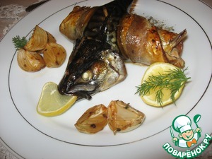 Рецепт «Скумбрия в сладком маринаде с печеным луком»: