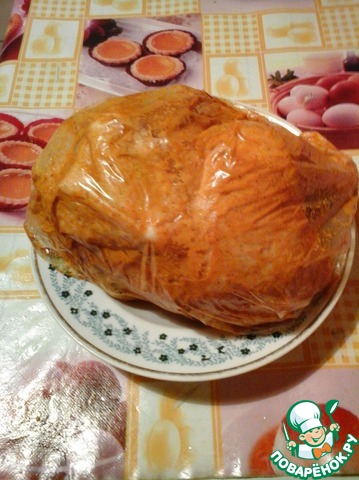 Эта курица - просто райская птица:) Нежная, ароматная, с золотистой корочкой, выдержанная во вкусном маринадике... м-м-м!.. Еще один хороший вариант приготовления курицы в духовке, попробовать всем очень советую! На фото курица уже порезана на куски, но она может также оставаться целой и служить украшением праздничного стола.