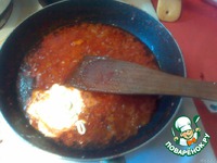Туда же - 2-3 ложки сметаны. Слегка протушиваем. |