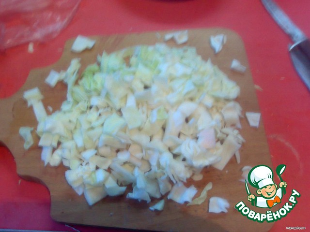 Я отваривала капусту в воде, а потом перемолола в блендере, потому что мелко капусту не удалось порубить.