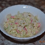 Итак, чистим яйца от скорлупы. Крабьи палочки режем. Зеленую редьку трем на крупной терке. Можно присолить и потом слить образовавшуюся жидкость, но мы так никогда не делаем - салат получается сочнее. Но тогда его нужно есть сразу, иначе отводянеет!