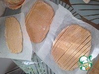 Выпекаем каждый корж 5-6 минут, затем прямо горячими разрезаем на полоски
