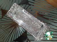Приступаем к сборке торта. для начала форму из под кекса или любую (какая есть), оборачиваем в фольгу, так, чтобы края фольги свисали