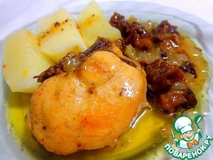 Рецепт «Курица, тушенная в яблочном соусе с грибами»: