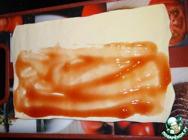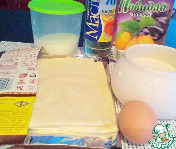 - Тесто слоеное (Обычно в упаковке 2 пластины теста, общий вес - 400 гр. Дрожжевое или пресное - значения не имеет) — 1 упак.