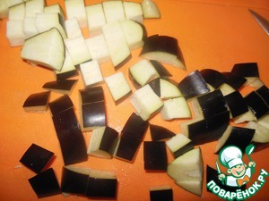 Баклажаны нарезать кубиками, посыпать солью, оставить на пару минут.