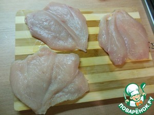 Куриное филе разрезать, не дорезая до конца, и открыть, как книгу.