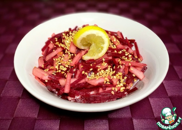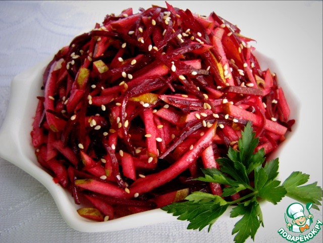 Мне больше нравится вариант с сырой свеклой. Сочно, хрустко, вкусно!