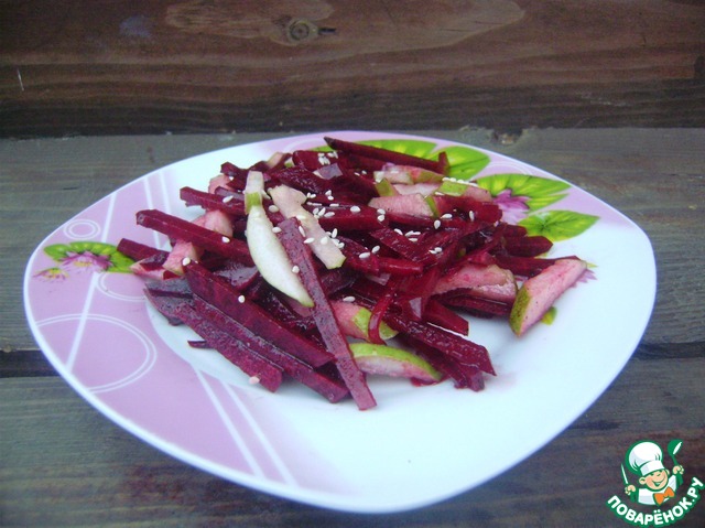 Свёкла - рекордсмен по содержанию полезных веществ. Представляю достойный дуэт из свёклы с грушей, где всего два основных ингредиента, а в итоге сочный, полезный, пикантный салат.
