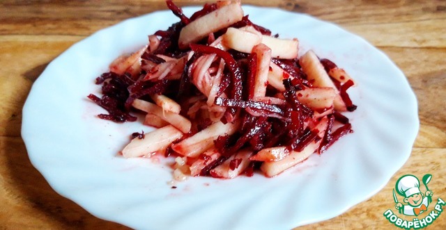 Можно приготовить этот салат с вареной или запеченой в духовке свеклой.