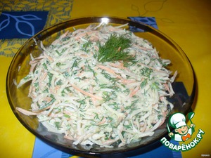 Зелень укропа мелко нарезать, добавить к овощам, заправить салат майонезом и хорошо перемешать. Если считаете нужным, добавить соль и перец. Легкий и полезный салат готов! Приятного аппетита!