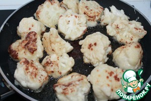 Делаем кляр. Для этого смешиваем муку с 2 ст. л. крахмала и добавляем воду. Разбиваем комочки. Кляр должен получиться как густая сметана, при необходимости добавляем муку. В кляре обваливаем каждое соцветие и отправляем на сковороду с разогретым растительным маслом.