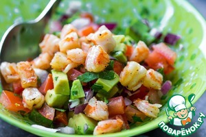 Классическое сочетание креветок, авокадо и помидоров в новой форме. На теплом гратене из картофеля салат заиграл новыми красками, а насыщенный соус прекрасно дополняет блюдо и придает изюминку.