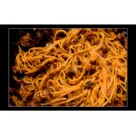 В соус добавляем сливочное масло и выключаем огонь. Добавляем в соус пасту, перчим, если нужно, посолить, хорошо перемешиваем, чтобы соус покрыл пасту, и готово!
