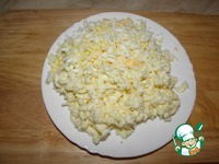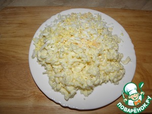 Два яйца отварить, сырки и яйца натереть на терке.