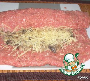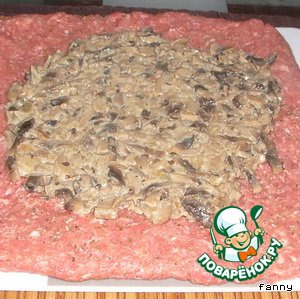 Скатать рулет в виде большой котлеты. Положить его в смазанную оливковым маслом форму.