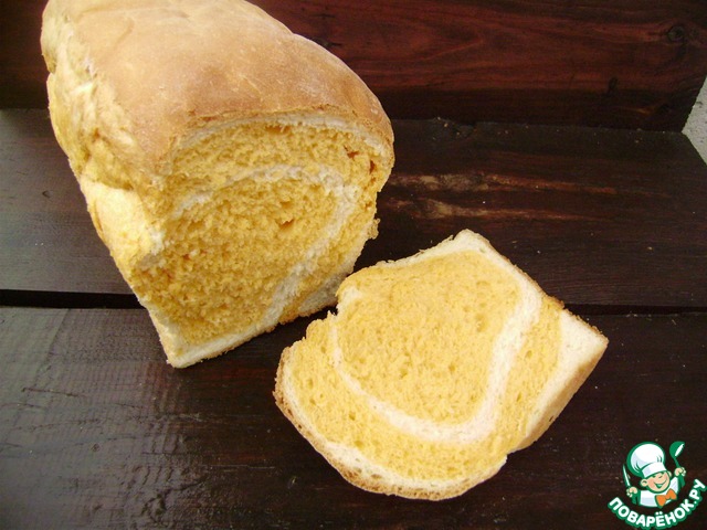 Мякиш у хлеба мало того что красивый, с узорами, но еще и приятно радует легкой разницей вкусов: в оранжевом томатном чувствуется небольшая кислинка. Прекрасный хлеб для праздничного стола! Рецепт взят с сайта "Я и моя хлебопечка" большое спасибо Анне Китаевой!