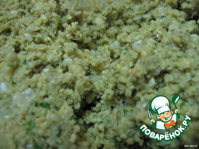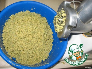 Пропустить через мясорубку нут, хлеб, зелень, чеснок, кунжут.
