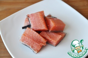 Рыбу чистим, разделываем на филе, режем на кусочки (у меня 2 на 3 см). -