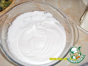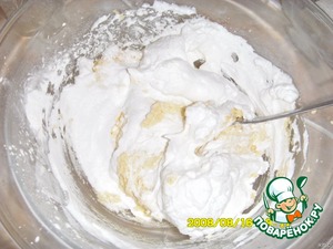 Вконце вводим взбитые белки (безе). Хорошо перемешать.