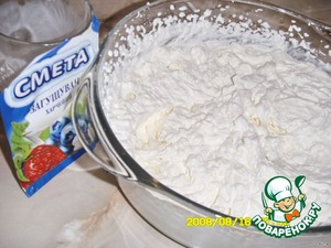 Крем готов. В связи с тем, что форма у меня в диаметре около 30 см, я выпекала 2 коржа. У кого меньше, значит корж делим на 2 части.