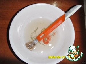 Желе, сейчас такие есть в продаже, класть в горячую воду и желатин готов. У кого нет, как обычно замочить желатин.