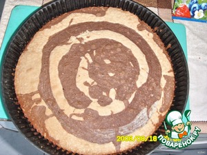 У меня большой мешочек в одном экземпляре. Я выложила вначале белый слой, после - коричневый на смазанную маслом форму. Кладем выпекать в разогретую духовку до 200 С на 30 мин. (зависит от Вашей духовки).