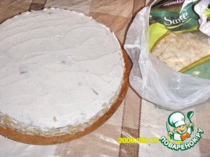 Второй корж обмазать кремом и положить на виноград и снова сверху обмазать кремом. Бока обсыпать миндальными листочками (сегодня НЕ моя импровизация).