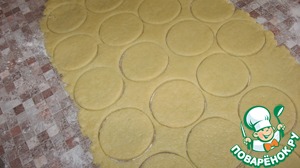 Раскатываем на столе оставшееся тесто и вырезаем небольшие кружочки