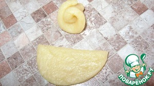 Делим тесто на две неравные части - побольше и поменьше.