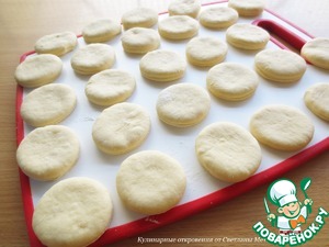 При помощи рюмки или стакана ( смотрите сами какого размера вы хотите) вырезать кружочки. Дать расстояться 10-15 минут