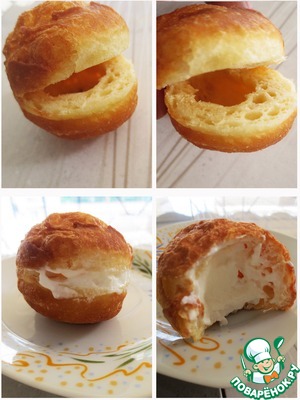 Пончики можно сделать с начинкой, для этого по середине делаем надрез острым ножом. Заполняем любой начинкой на Ваш вкус: заварной крем, сгущенное молоко, шоколадная паста или джем