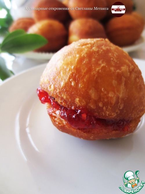 Сверху пончики можно присыпать сахарной пудрой, полить сиропом, медом или оставить так.